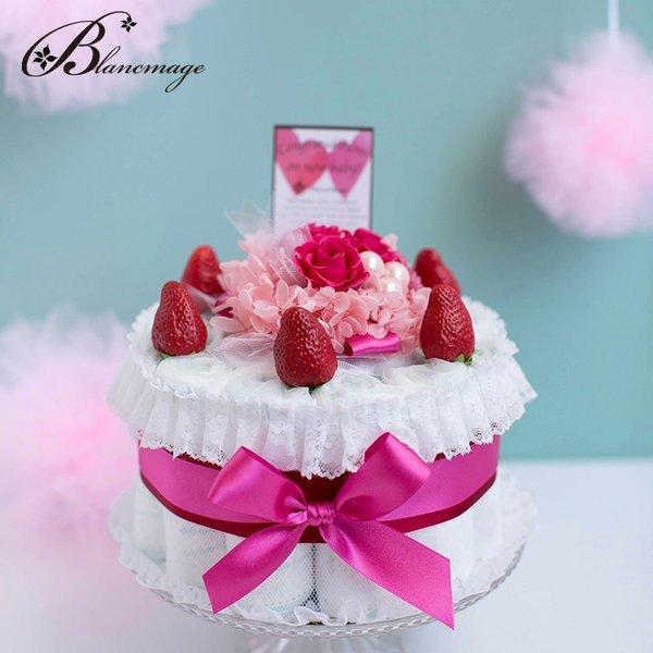 ブーケ付 出産祝い おむつケーキ ギフト プリザーブドフラワー ストロベリーショートケーキ 2段 おしゃれ 花 苺 イチゴ 花束 Dyp Ch Red ブランマージュ ヤフー店 通販 Yahoo ショッピング
